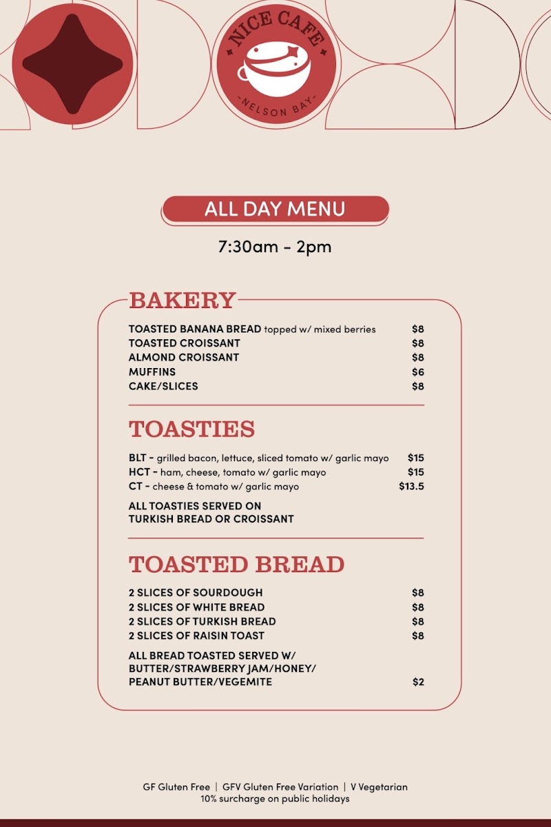 Introducing the Menu at Nice Cafe at Nelson Bay